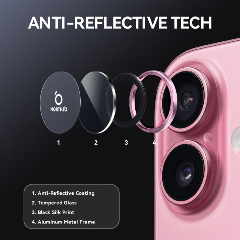 Melhore o seu iPhone 17 com o protetor da lente da câmara Northjo. Com um anel de alumínio com veios de CD, acrescenta um toque elegante e moderno ao seu iPhone 17, ao mesmo tempo que oferece uma proteção robusta. O vidro temperado 9H protege contra riscos, impactos e poeira, assegurando que a lente da câmara permanece cristalina. Com uma instalação fácil e sem ferramentas, pode aumentar a durabilidade e a estética do seu iPhone 17 em segundos.