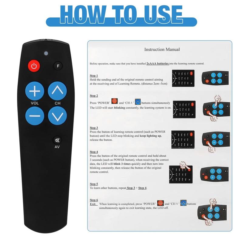 Controlo remoto universal para idosos - Controlo remoto IR de aprendizagem inteligente com 7 botões para TV, descodificador, DVD e VCD