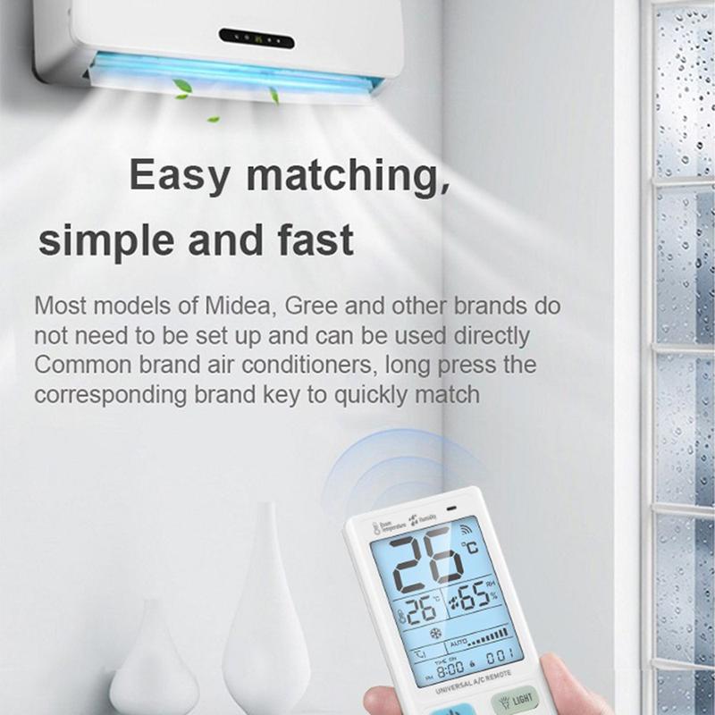 - Compatibilidade universal: Emparelha-se perfeitamente com a maioria das principais marcas de ar condicionado, tornando-o um substituto ideal ou um controle remoto sobressalente.