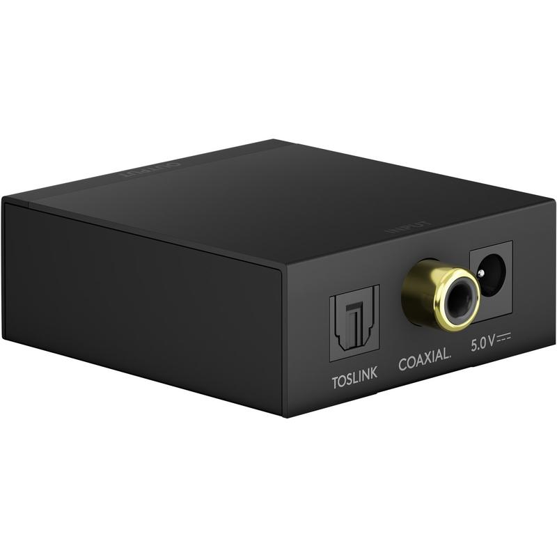 - Converte áudio TOSLINK ou coaxial S/PDIF para RCA analógico esquerdo/direito ou estéreo de 3,5 mm - sem necessidade de caixas extra.