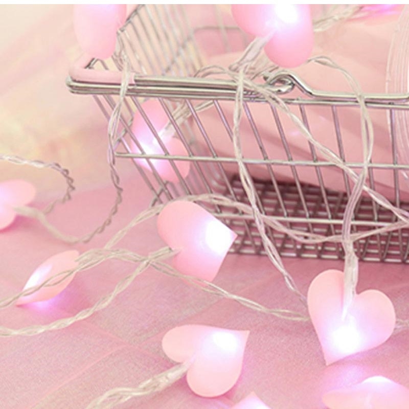 Luzes de fadas LED em forma de coração de 3 m - Cordão de 20 lâmpadas a pilhas, modo de flash cor-de-rosa e fio de cobre flexível