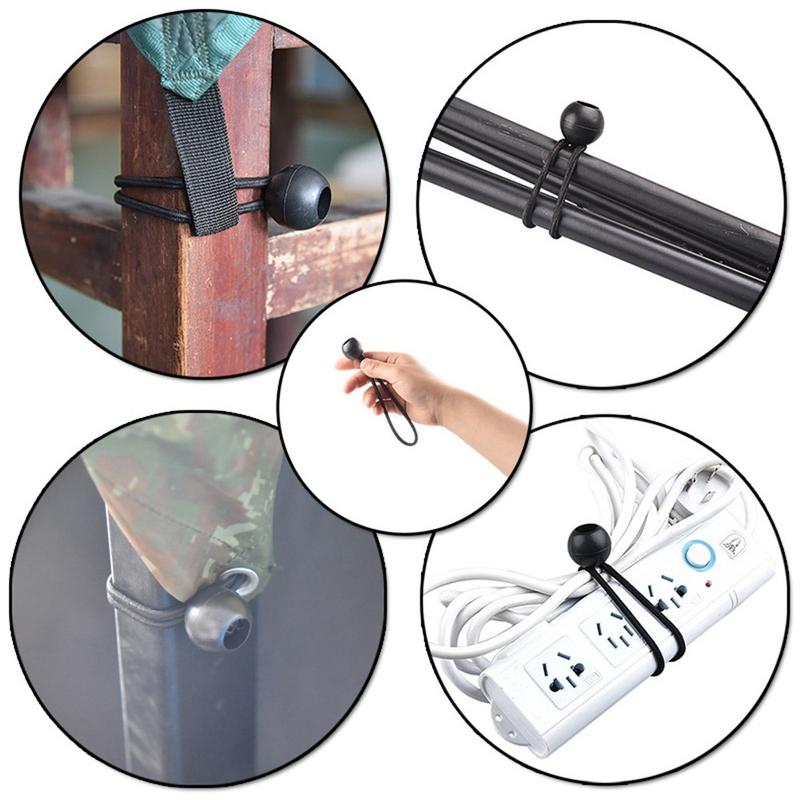 Utilize estas cordas para prender as abas das tendas, ancorar toldos, agrupar cabos ou amarrar itens em carros e motas. O seu mecanismo simples de laço e bola permite-lhe manter tudo organizado - quer esteja numa viagem de campismo, a realizar projectos de bricolage ou apenas a prender itens em casa.
