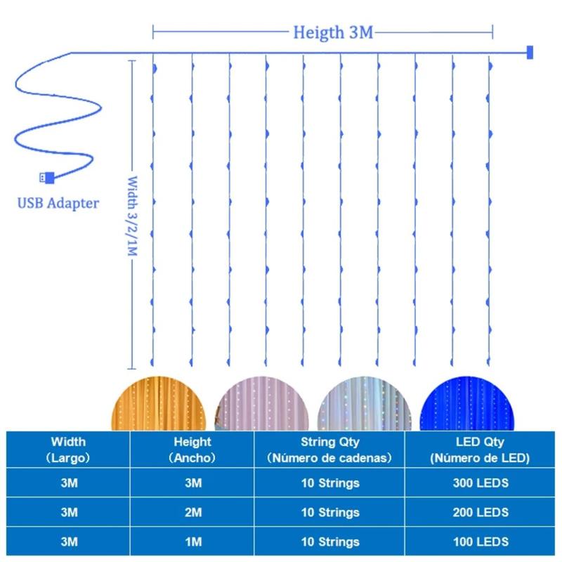 - Iluminação ampla e brilhante - Cobre 3m x 2m com 200 contas de lâmpada LED em 10 cordas, criando um efeito visual deslumbrante.