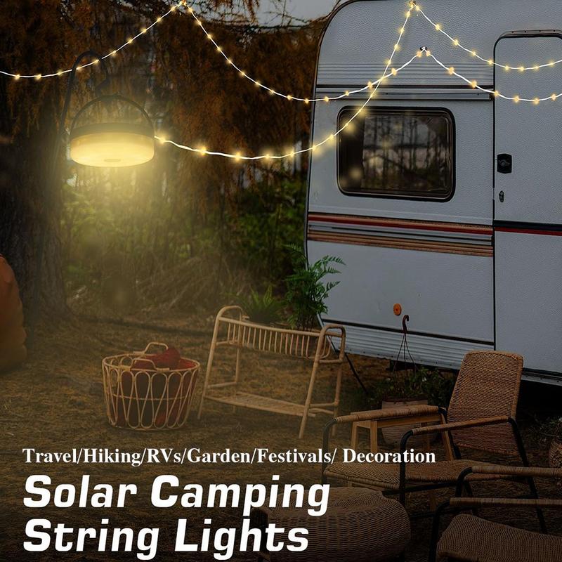Dê um encanto instantâneo a árvores, pérgulas e tendas de festas - sem ter de procurar uma tomada. Este fio de 12metros inclui 120 LEDs brilhantes que absorvem energia de uma bateria solar de 3600 mAh e brilham durante 18 horas. Um prático enrolador evita emaranhados durante a montagem, enquanto a porta USB-A da bateria funciona como um banco de energia de emergência para o seu telemóvel.