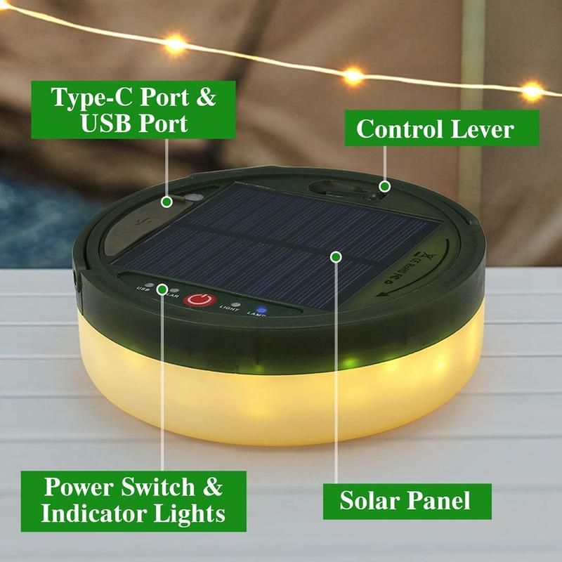 - Criar um brilho acolhedor à volta de tendas, caravanas ou campos de festivais - e depois carregar um telemóvel durante a noite.