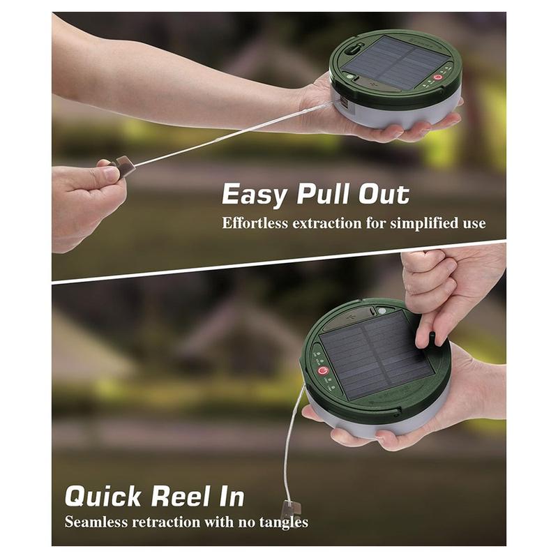 - Liberdade totalmente solar - o painel de alta eficiência reabastece a bateria de iões de lítio de 3600 mAh à luz do dia; sem custos de eletricidade, sem pilhas descartáveis.