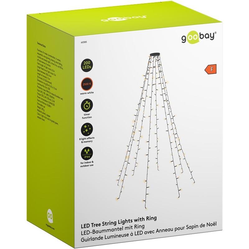 Ilumine sem esforço as suas celebrações festivas com a Cobertura para Árvores com Anel 200 LED - 8 x 1,5 m. Concebida para se adaptar a árvores de Natal com 1,40 a 1,80 m, esta cobertura especializada simplifica a sua rotina de decoração, tornando a montagem mais rápida e fácil do que as tradicionais luzes de fadas. A sua classificação IP44 garante um desempenho duradouro tanto no interior como no exterior, enquanto o cabo verde-escuro se integra perfeitamente na folhagem natural.