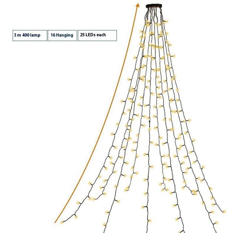 Transforme a sua árvore de Natal num centro de mesa deslumbrante com as Luzes LED para Árvore de Natal em cascata de 3m com 400 luzes. Com 8 modos de iluminação festiva e 400 LEDs brancos quentes, esta decoração cria uma atmosfera festiva mágica. Concebida para ser fácil de utilizar, a instalação demora menos de um minuto - basta colocar o anel no topo da árvore e deixar que os 10 fios de luz caiam em cascata. Perfeitas para instalações no interior e no exterior, estas luzes à prova de água IP44 são seguras, duradouras e trazem calor às suas celebrações festivas.