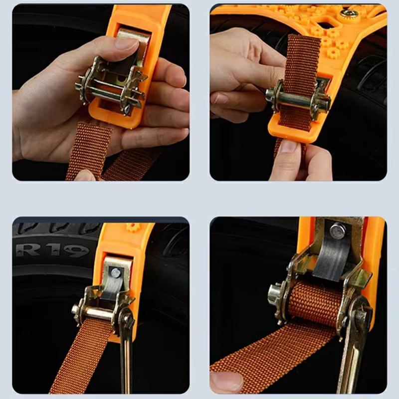 Este conjunto universal de correntes de neve combina segurança, durabilidade e conveniência para a condução no inverno ou fora de estrada. É ideal para condutores que procuram uma tração fiável em superfícies escorregadias sem o incómodo das volumosas correntes tradicionais.