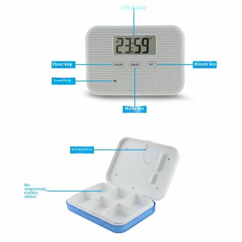 CR-211 Organizador inteligente de comprimidos com 6 compartimentos - Temporizador com alertas sonoros e de vibração, 5 alarmes diários, tamanho de viagem 92 x 65 x 20 mm