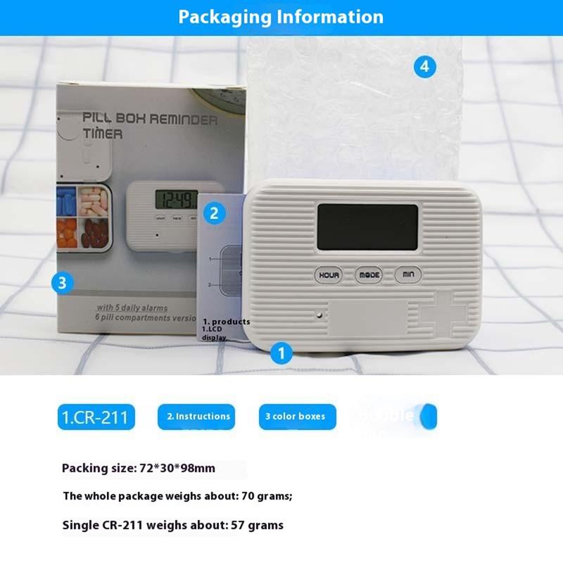 - Com 62 g, o CR-211 pesa menos do que duas pilhas AA, mas os seus seis compartimentos podem conter aproximadamente 30 comprimidos de tamanho médio - o suficiente para uma semana inteira de terapia duas vezes por dia.
