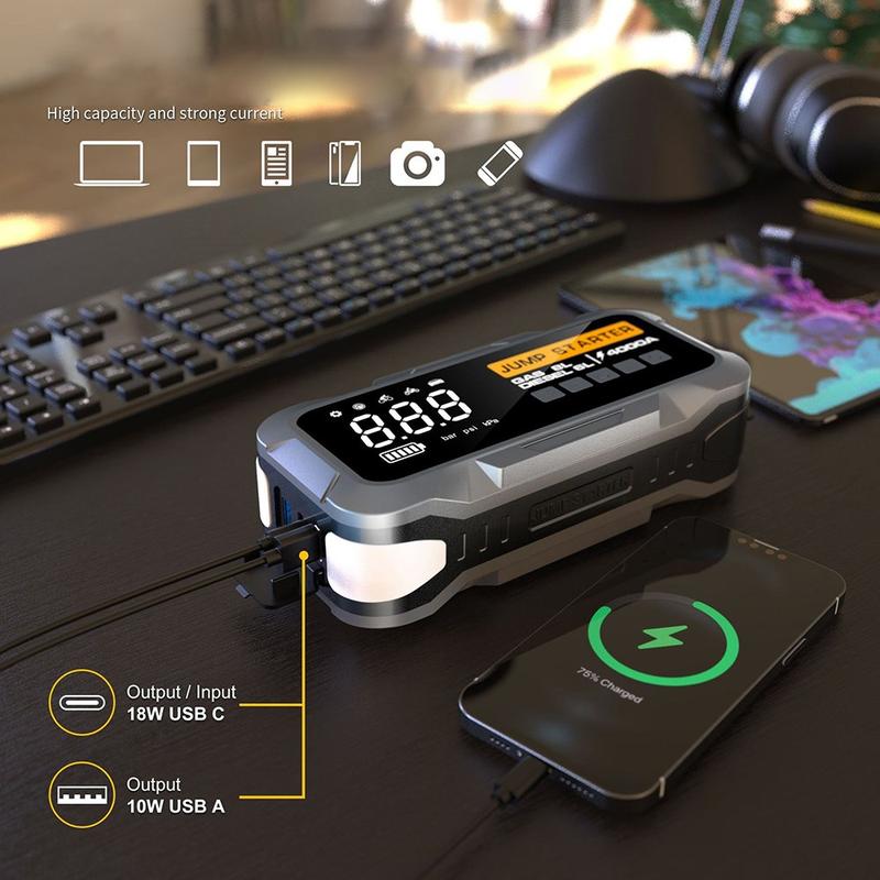 O CY97 é uma excelente compra para condutores que querem mais do que apenas um arrancador de bateria na bagageira. Combina várias funções úteis para a estrada numa única unidade compacta, o que significa que não precisa de levar consigo um inflador de pneus, uma lanterna e um carregador de reserva separados. Isto torna-o especialmente prático para deslocações diárias, viagens de carro, condução no inverno e preparação para emergências. O ecrã digital e a função de paragem automática da insuflação também facilitam a utilização para quem procura uma experiência mais simples e controlada.