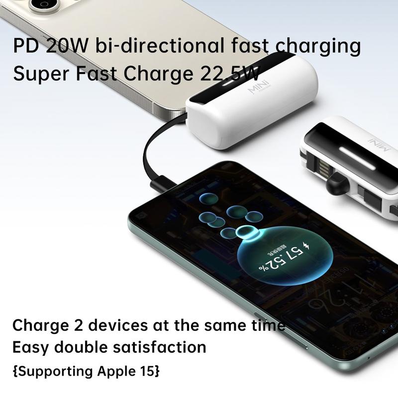 Cyke X3 Mini Lightning Power Bank com cabos USB-C e USB-A - 5000mAh