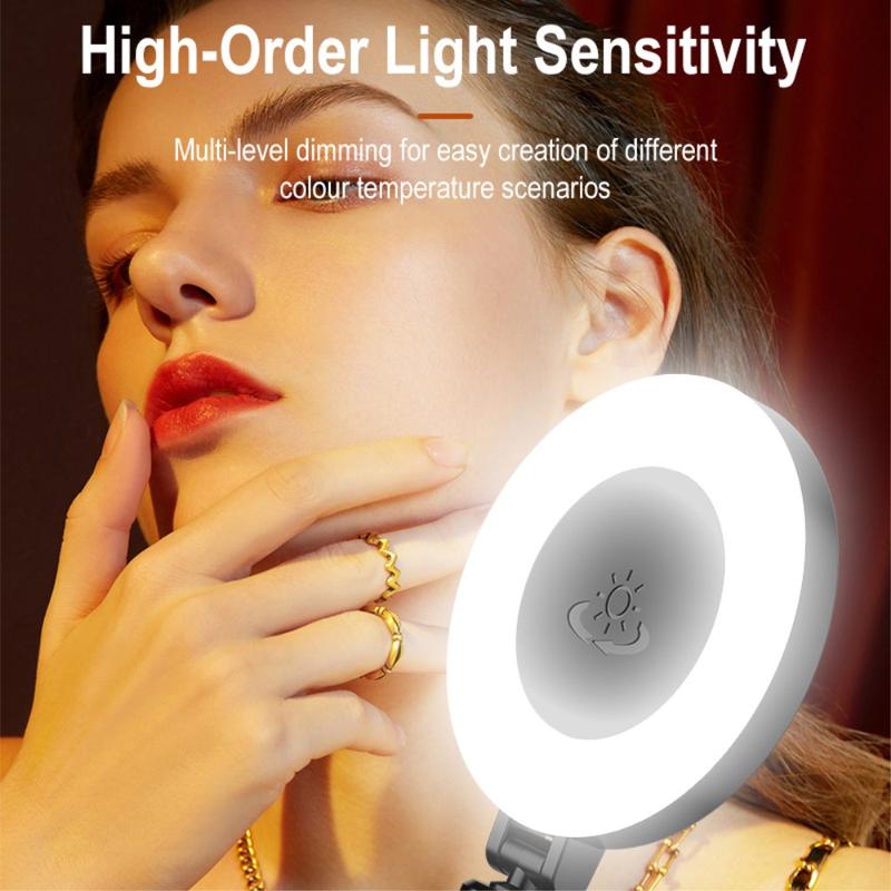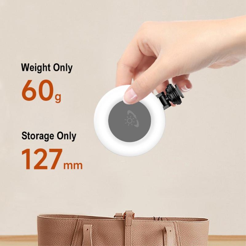 Compacto e leve, este anel luminoso cabe no seu bolso, oferecendo comodidade para a criação de conteúdos e beleza em movimento
