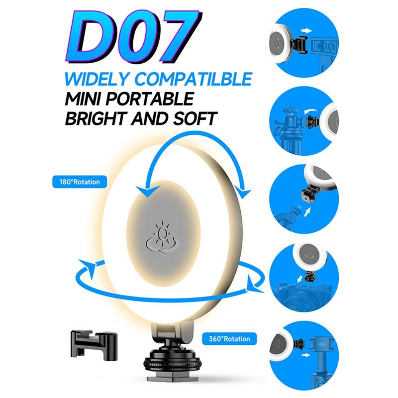 D07 Luz de preenchimento portátil regulável de 3 cores e 9 níveis para fotografia de selfies e transmissão em direto