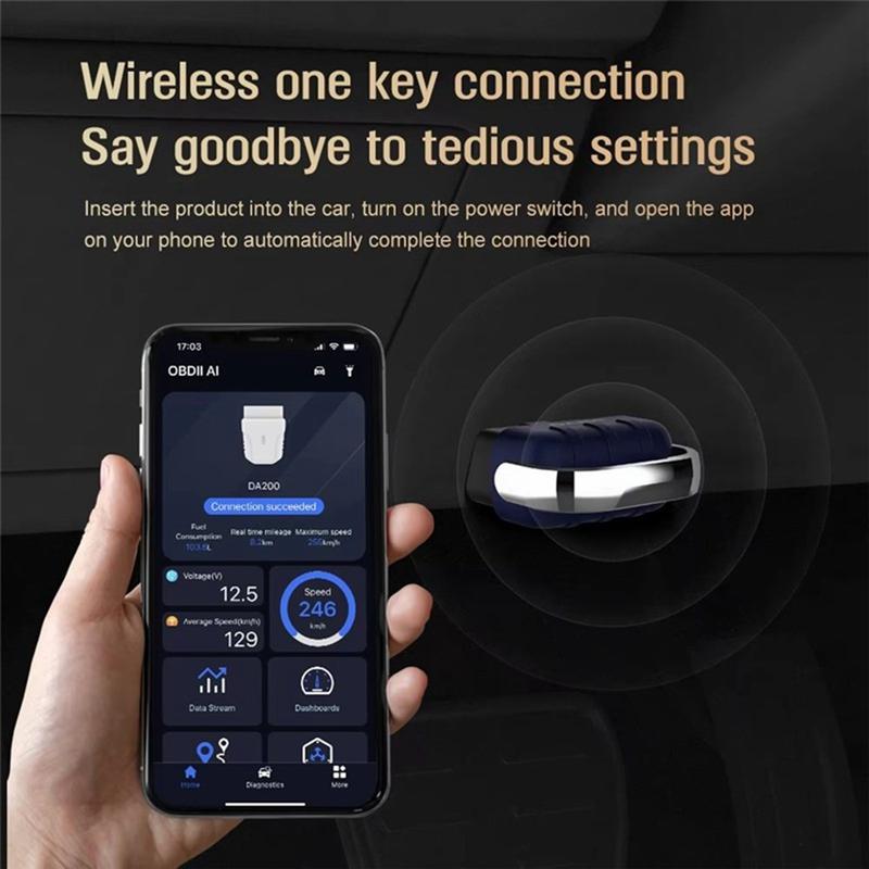 Scanner de diagnóstico de automóvel DA200 Bluetooth 5.4 OBD2 - Leitor de código de avaria do motor com diagnóstico de IA, dados em tempo real e aplicação multilingue