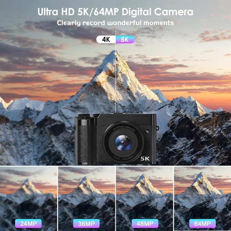 - Resolução de alta definição 5K: Grave filmagens de vídeo nítidas e imagens estáticas vibrantes em até 5K, garantindo que todos os detalhes apareçam na reprodução.
