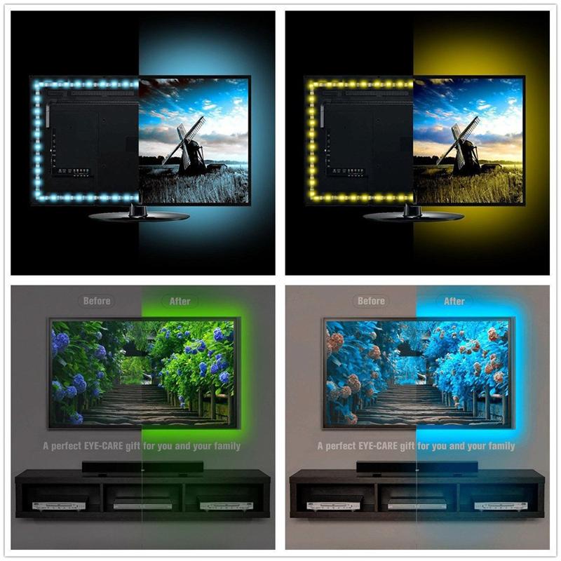 Adicione uma ótima iluminação de fundo ao seu monitor, TV, desktop, PC, reduzindo a fadiga ocular causada por diferenças no brilho da imagem de cenas de filmes, shows e jogos. A luz de tira led também pode ajudar a tornar as cores diferentes em sua tela que parecem mais ricas.