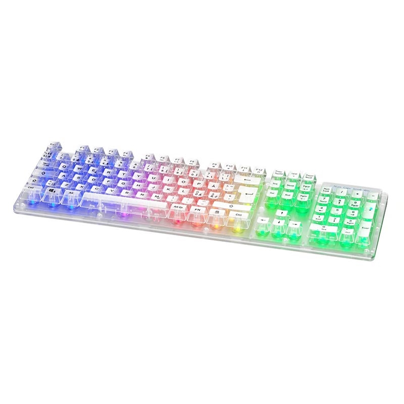 - Design elegante: O painel frontal transparente e o design de teclas flutuantes dão ao teclado uma aparência moderna e elegante que se destaca em qualquer configuração de jogo.