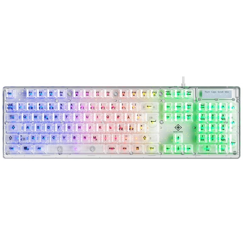 Deltaco DK250 Transparent Gaming Keyboard com interruptores de membrana - Layout nórdico, retroiluminação RGB