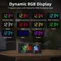 - Funções: Hora, alarme, snooze, data, luz nocturna RGB, porta de carregamento USB