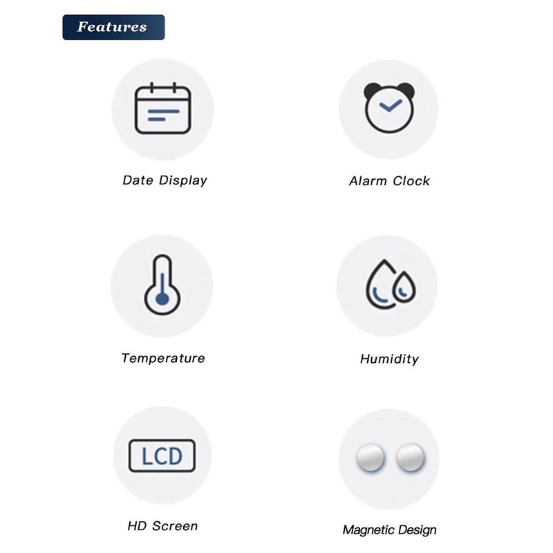 - Multifuncional: Inclui um calendário, monitor de temperatura e umidade, oferecendo um conjunto abrangente de recursos para ajudá-lo a se manter informado.