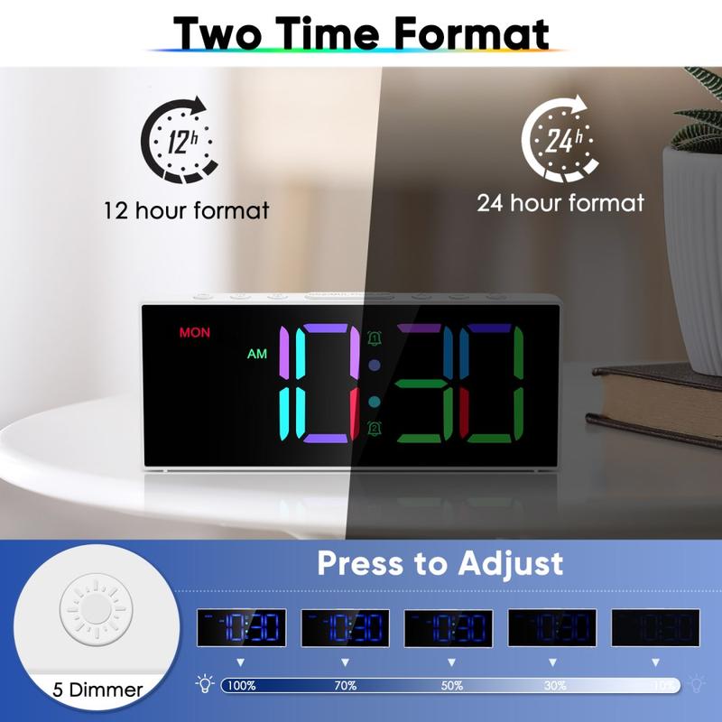 O brilho ajustável ajuda a reduzir o cansaço visual à noite, mantendo o ecrã visível sem ser agressivo. Os alarmes duplos são populares para separar as rotinas dos dias úteis dos padrões de sono do fim de semana.