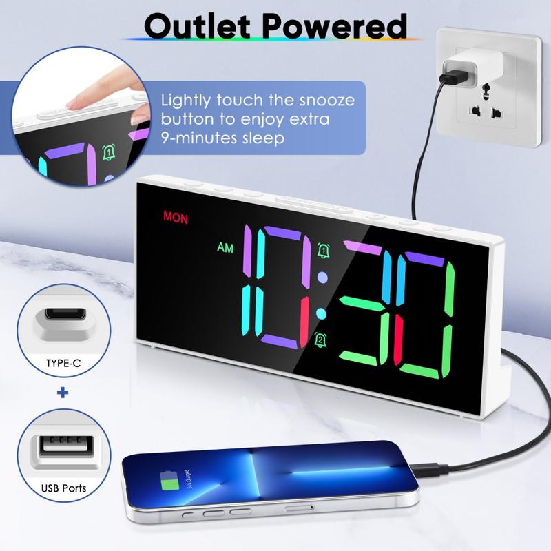 - Relógio de sala de estar ou secretária com modos de exibição RGB atraentes