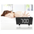 Este dispositivo multifuncional combina projeção de horas, rádio FM, despertador e funções de carregamento. Pode memorizar até 15 canais de rádio para ouvir música de todo o mundo. Criado com um projetor ajustável em 180 graus e brilho de projeção de 3 níveis, este despertador garante uma exibição clara das horas na parede ou no teto. As configurações de alarme duplo com dois sons de alarme permitem-lhe separar a hora de acordar da hora de fazer exercícios. Se deseja carregar o seu telemóvel ou outros dispositivos eletrónicos, deve ligar a projeção de horas. Anime os seus filhos ou avós com este prático despertador-projetor!