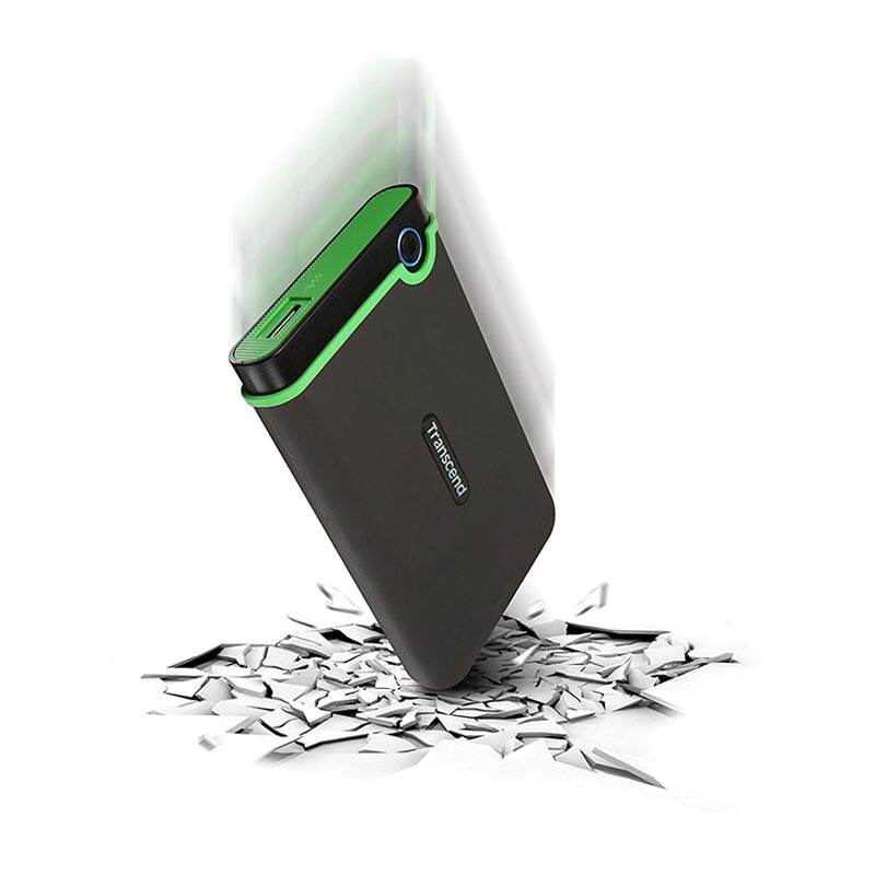 O Transcend StoreJet 25M3 mantém os seus dados seguros, mesmo se o deixar cair numa superfície dura.