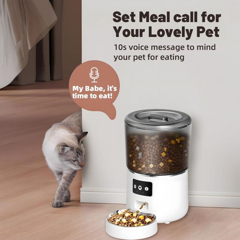 - Capacidade de 4l: O espaçoso reservatório de alimentos contém ração suficiente para alimentar gatos ou cães de pequeno a médio porte durante vários dias.