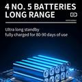 - Bateria: Capacidade nominal: 1000mAh, corrente de descarga=1A; 4 x AA (não incluída)