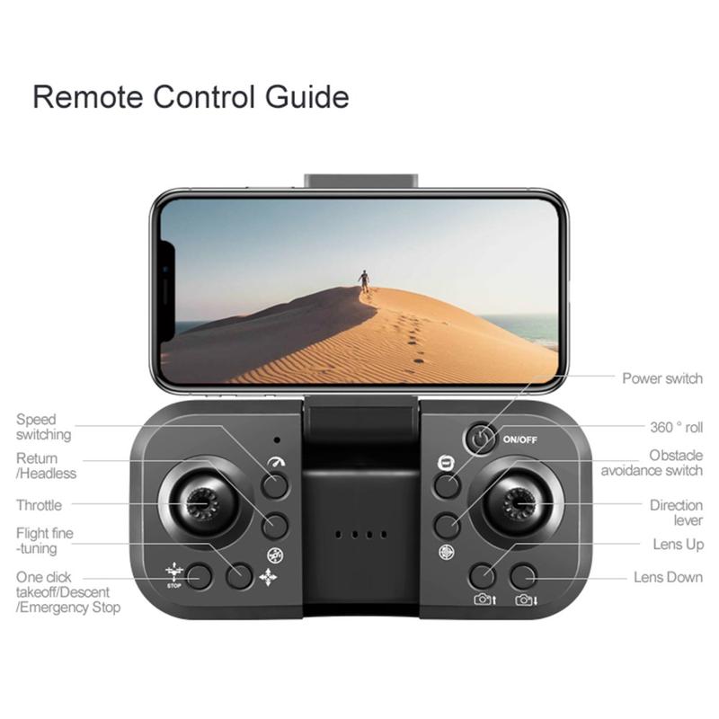 Dê os seus primeiros passos na fotografia aérea com o drone dobrável sem escovas M1S, concebido para ser portátil, fácil de usar para iniciantes e repleto de recursos criativos. A sua configuração de câmara multi-ângulo (perspetivas frontal + auxiliar/para baixo) oferece mais liberdade para filmar paisagens, viagens em família e momentos de ação, enquanto o posicionamento de fluxo ótico ajuda o drone a pairar de forma mais estável para imagens mais nítidas. A câmara frontal principal suporta um ângulo ajustável de 90°, facilitando o enquadramento de tudo, desde cenários amplos até revelações em ângulos mais elevados.