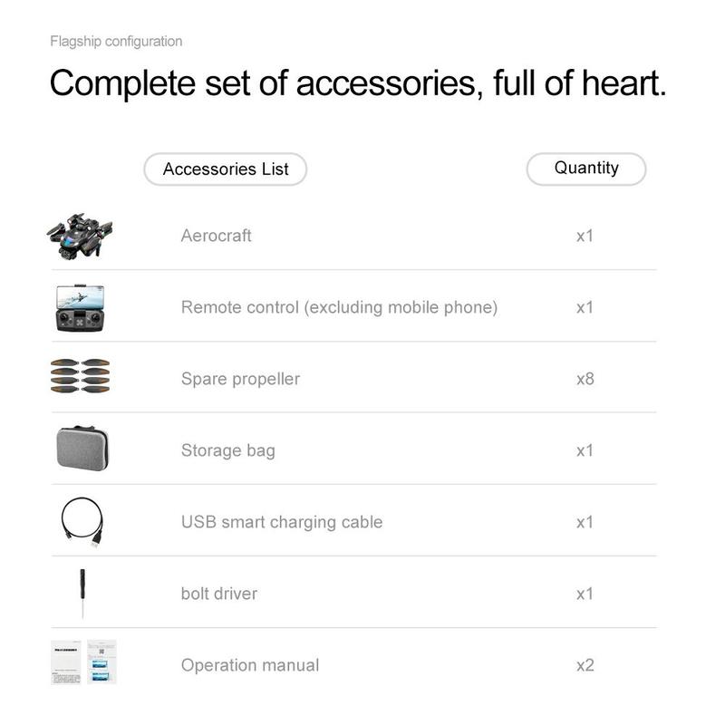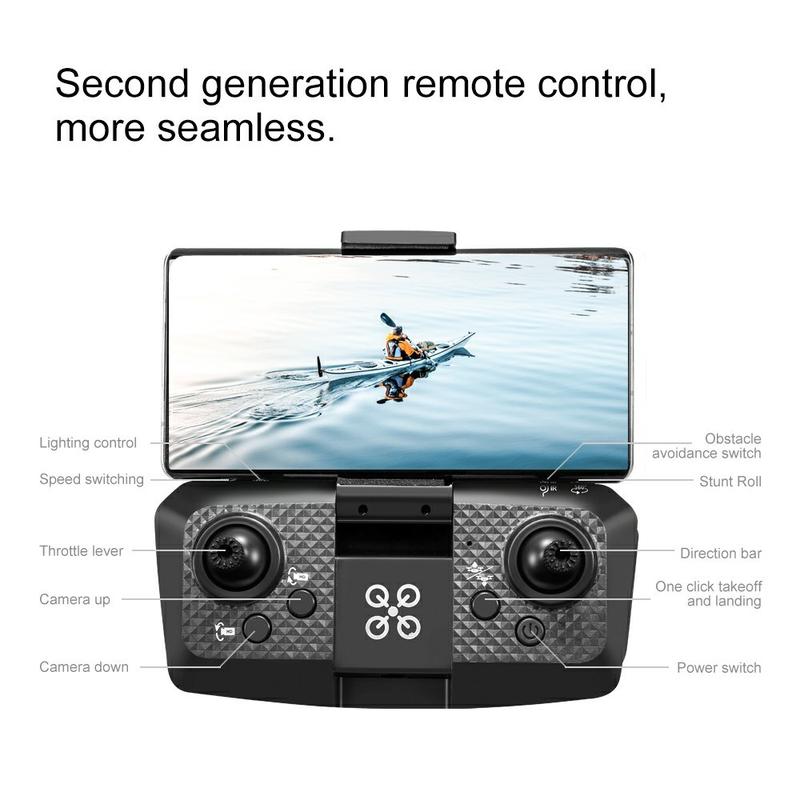 - Sistema de câmera dupla - câmera WiFi de grande angular 8K + câmera de fluxo ótico HD inferior para várias perspectivas de filmagem.