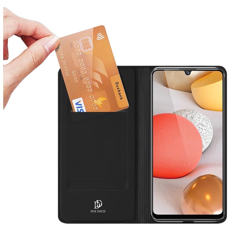- Dux Ducis flip case para Samsung Galaxy A12 contém uma ranhura para cartões