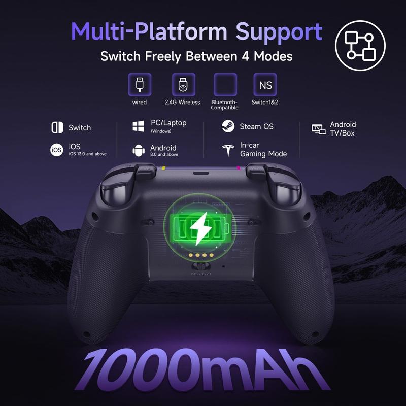 - Conectividade de modo triplo - Alterne facilmente entre os modos sem fio de 2,4 GHz, compatível com Bluetooth e USB-C com fio para compatibilidade perfeita com Switch, Windows, Android e iOS.