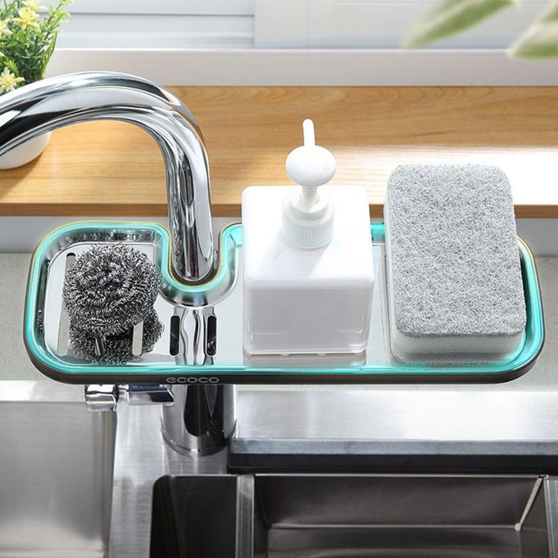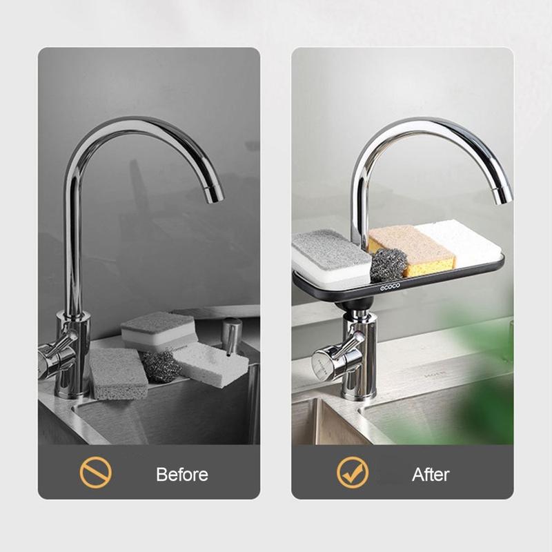 Suporte para esponjas e escovas em aço inoxidável Ecoco - Suporte para sabão montado na torneira com tabuleiro de drenagem