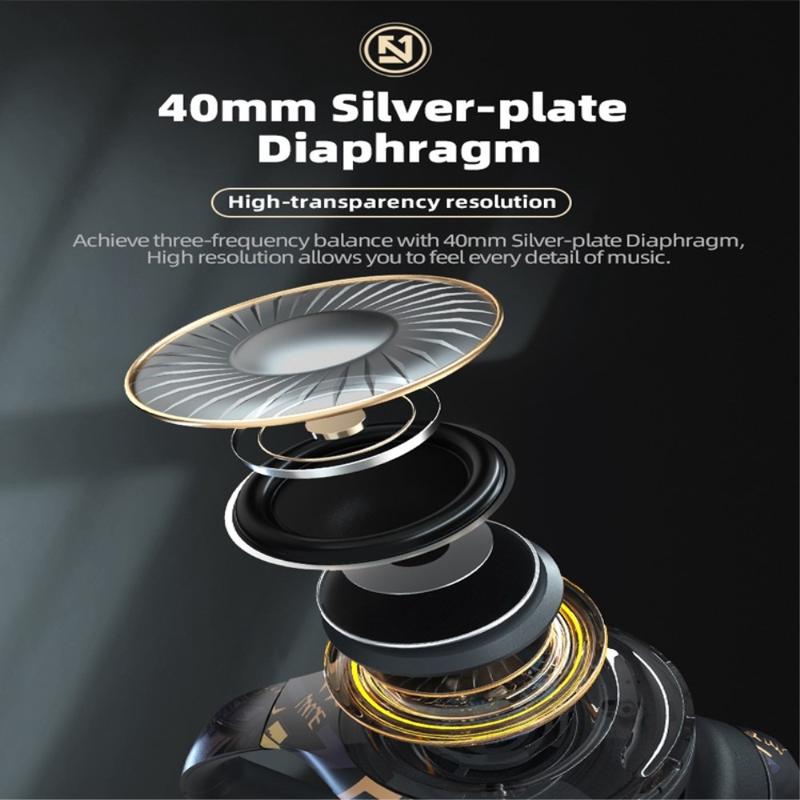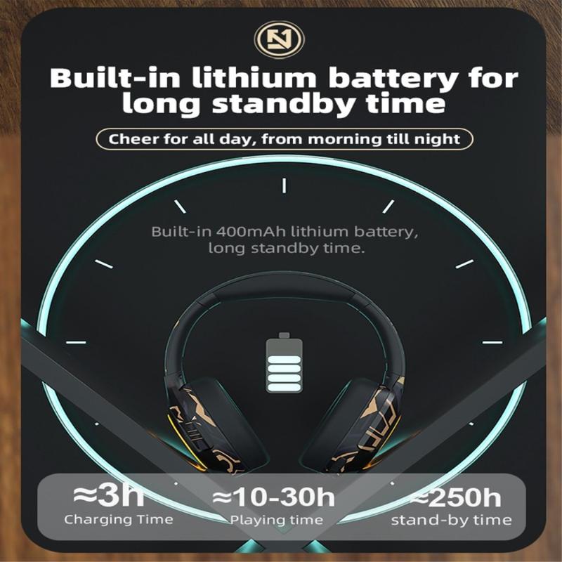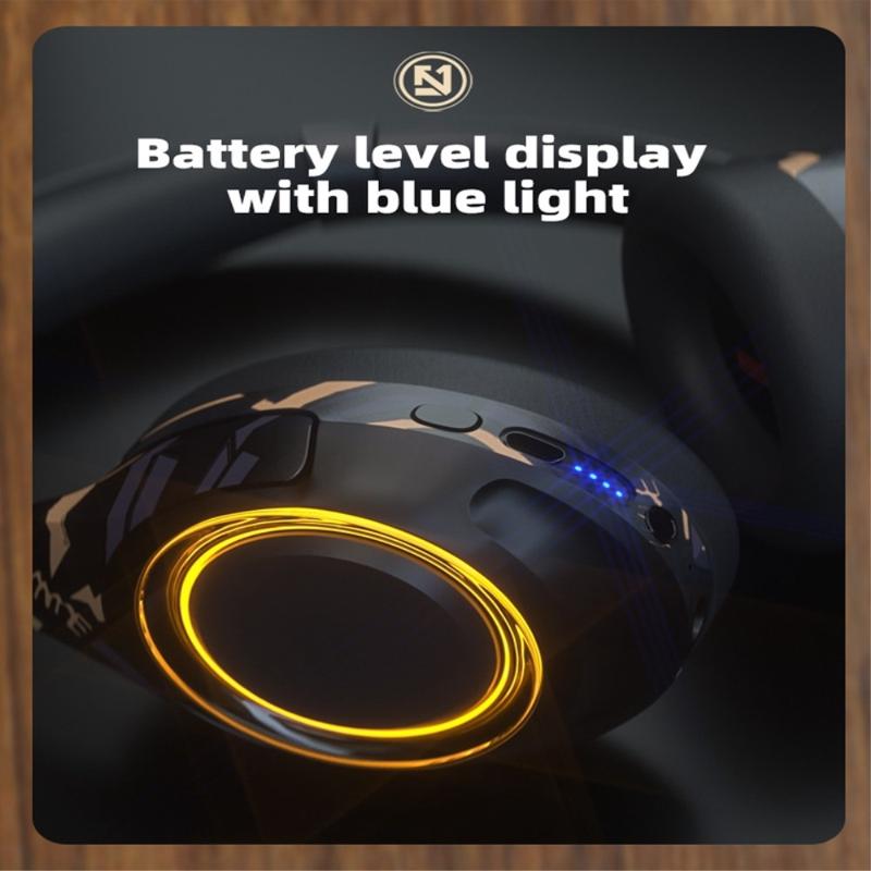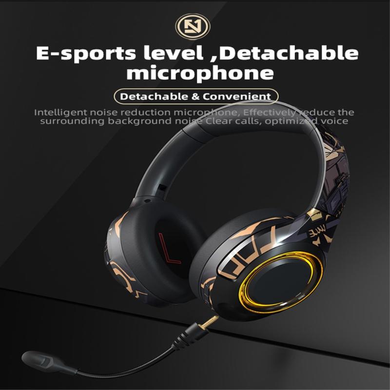 Qualidade de som de alta fidelidade, microfone conectável, protetores auriculares em couro proteico, redução total do ruído intra-auricular, iluminação fria, bateria de longa duração