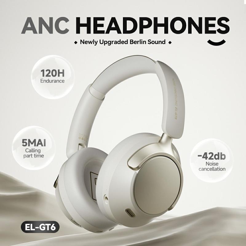 EL-GT6 Auscultadores sem fios ANC Over-Ear / Auscultadores para jogos com Bluetooth 6.0, som HiFi, baixa latência