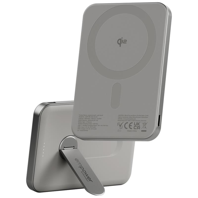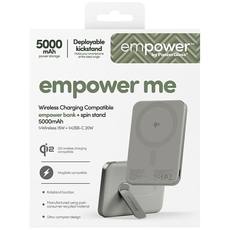 Empower by PanzerGlass Banco de energia sem fios magnético com suporte giratório - Banco de energia de 5000mAh compatível com Qi2 e MagSafe