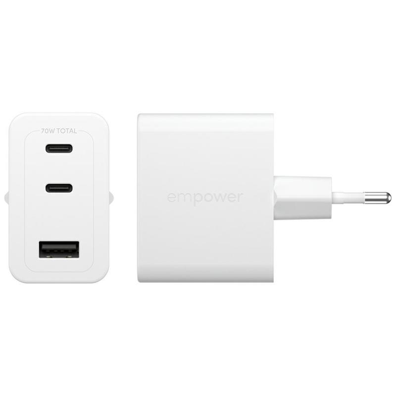 Empower by PanzerGlass Turbo 70W Charger - Carregador rápido GaN 2× USB-C + 1× USB-A