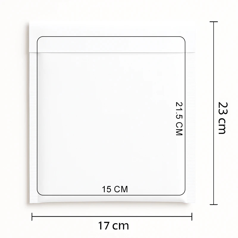 O envelope adapta-se ao tamanho C3 e tem dimensões externas de 170x225mm e dimensões internas de 150x215mm.