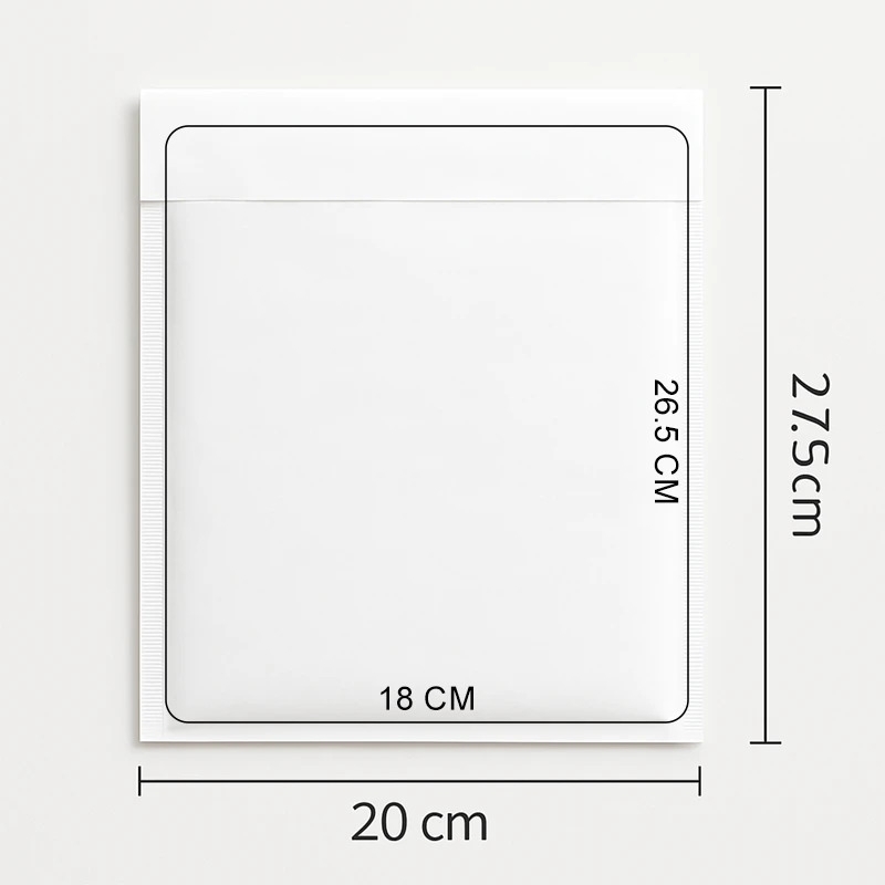 O envelope adapta-se ao tamanho D4 e tem dimensões externas de 200x275mm e dimensões internas de 180x265mm.