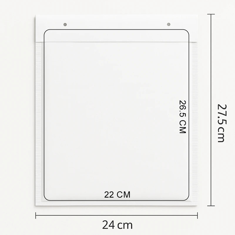 O envelope adapta-se ao tamanho E5 e tem dimensões externas de 240x275mm e dimensões internas de 220x265mm.