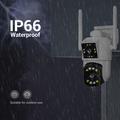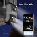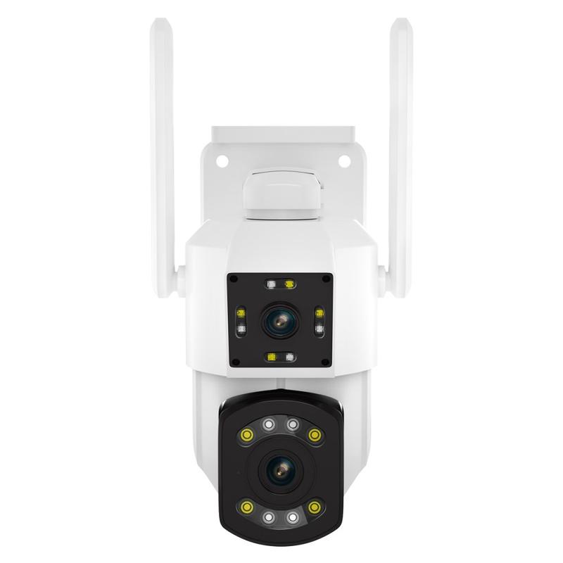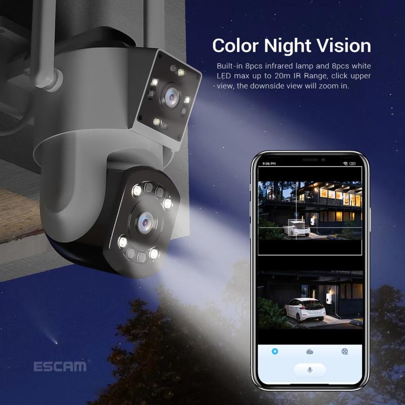 Proteja entradas, pátios ou fachadas de lojas com uma câmara que vê mais. A ESCAM PT210 combina duas lentes de 3MP e movimento panorâmico total de 355° / inclinação de 140° para proporcionar uma cobertura de ecrã duplo sem falhas com uma resolução nítida de 2304 × 1296. Oito LEDs infravermelhos e oito projectores brancos mudam automaticamente, proporcionando uma visão nocturna nítida a preto e branco ou filmagens a cores até 20 m sem projectores adicionais.