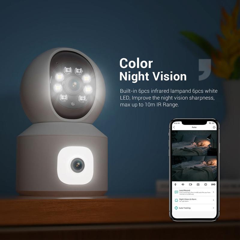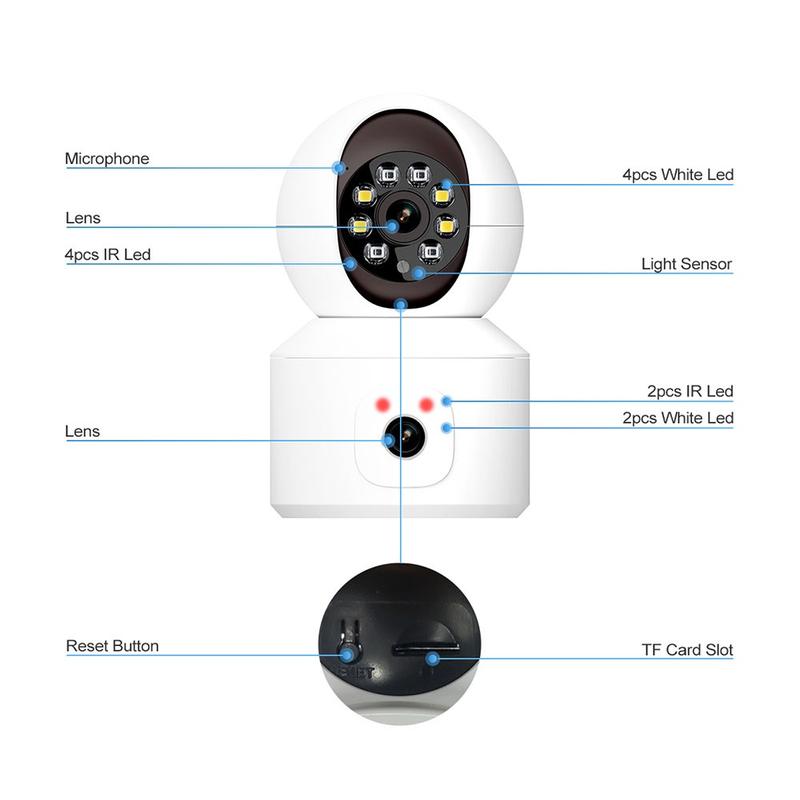 ESCAM QF010 Câmara WiFi de deteção de movimento de lente dupla 2x2MP Câmara de voz bidirecional com suporte para armazenamento na nuvem - Ficha UE