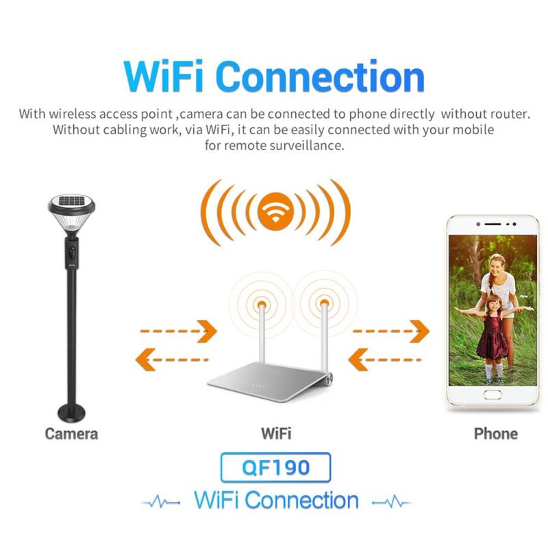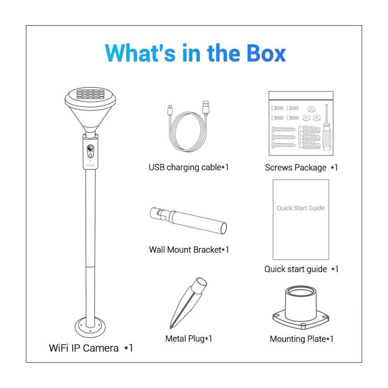- Energia Solar + Bateria Dupla - Um painel de 2W alimenta a célula da lâmpada de 2000mAh e a célula da câmara de 2600mAh; apenas 3-6h de luz solar mantêm a unidade a funcionar durante semanas.