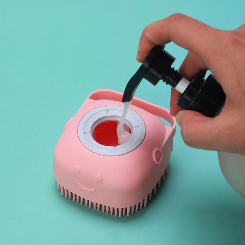 Escova macia para o banho de cães e gatos - Escova de borracha para o cuidado de animais de estimação com doseador de champô