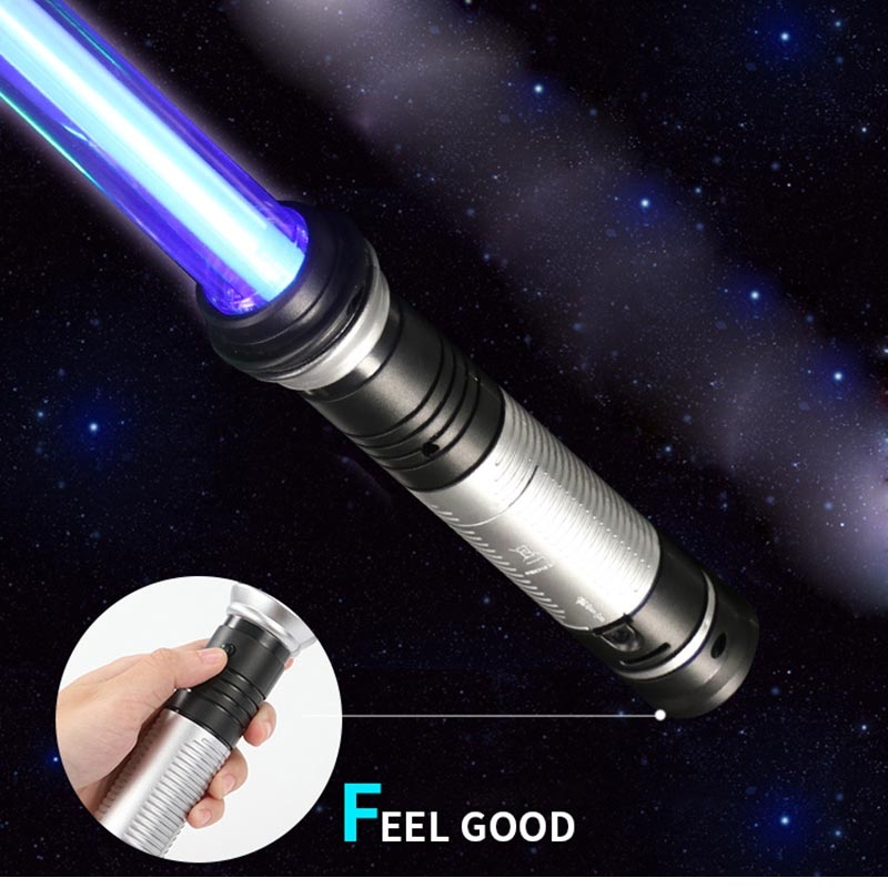 Lâminas seguras LED translúcidas com alças de design detalhado. guerreiros de galáxias realistas jogam