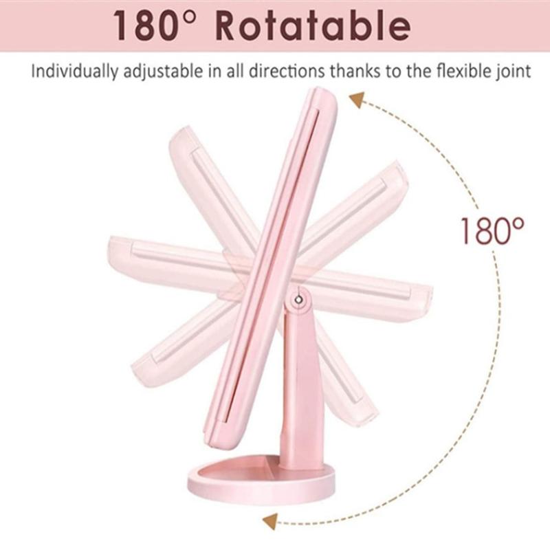 O espelho de maquilhagem LED dobrável de 3 lados combina um design elegante com caraterísticas práticas como brilho ajustável e múltiplas ampliações. A sua forma compacta e dobrável faz dele um belo acessório de maquilhagem e um conveniente companheiro de viagem.